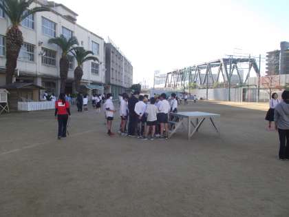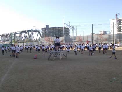 縄跳び集会の最後に運動委員会から「大なわ八の字大会」の告知がありました。