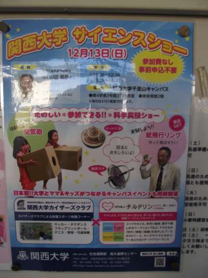 12月13日(日)11:30〜12:30.13:30〜14:30.参加費無し。事前申込不要。関西大学千里山キャンパス。第4学舎3号館3101教室。東体育館2階。受付は3101教室。テレビでおなじみのあの先生が来られます。