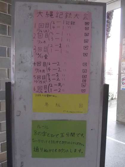 5分間でどれだけ跳べるかです。6−1が273回。4−1が140回でした。