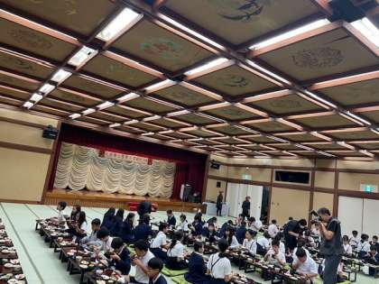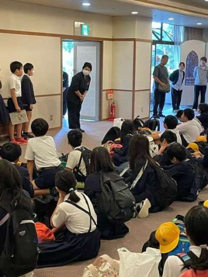 朝ご飯をしっかり食べて、閉舎式を終えました。水族館での活動が始まりました。