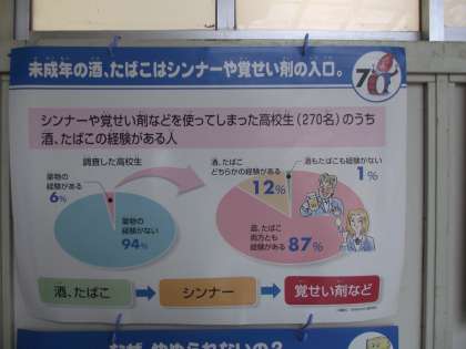 未成年者が「アルコール」「タバコ」「薬物」を摂取するとどうなるか。なぜ、「アルコール」「タバコ」「薬物」はやめられないのか。『キミは、大丈夫?』と言った内容です。