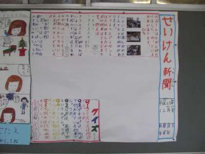 強風で、新聞委員会作成の「壁新聞」の記事がどこかに飛んでいってしまいました。もっか捜索中です。