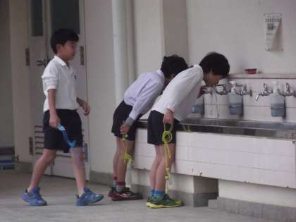 駆け足とびにも挑戦。終わったら「手洗い・うがい」です。