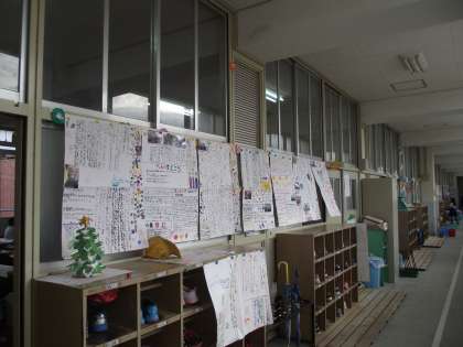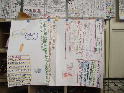 懇談の始まりを待つ間、子どもたちが作成した新聞を読めます。