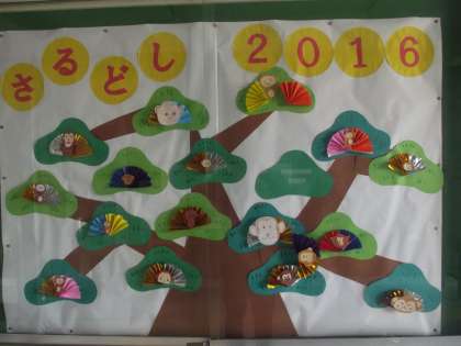月が改まり、新年を迎えました。玄関もおさるさんがいっぱいです。