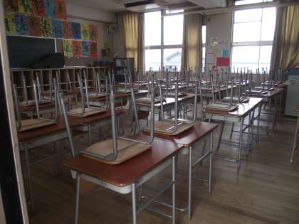 ワックスを塗ってピカピカだったり、椅子を上げて待っていたり、とにかく教室は、明日の子どもたちを待ってます。