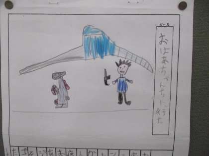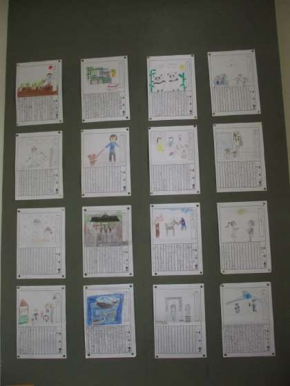 3号階段踊り場にも、小さい学年のお友達の絵日記が貼り出されました。いろんな経験を子どもたちは、つんだようです。