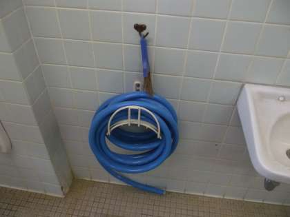 水を流して床をこするのは金曜日だけです。他の日はホウキではいて、便器をこすったりしています。