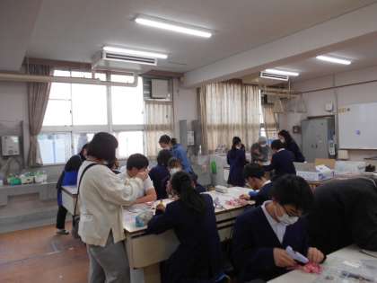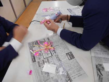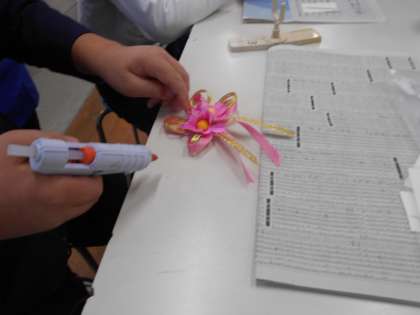 6年生が卒業式につける、コサージュづくりに挑戦しました。