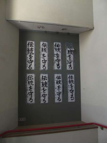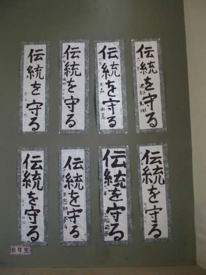 昨日の「書初め」が、3号階段踊り場に貼りだされていました。
