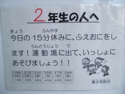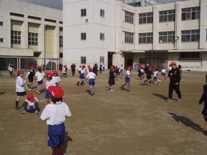 さすらう集会委員は。今日は2年生と「ふえオニ」です。何回目かで、少ない集会委員が捕まる側に回ると、圧倒的多数の2年生にすぐつかまりました。