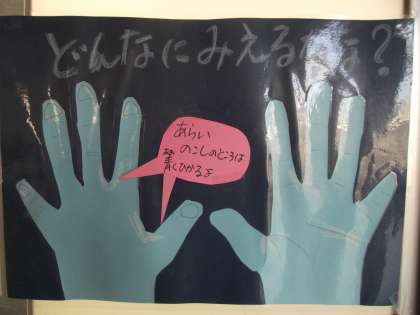 魔法の機械に手を入れて見てみると、さあ、どうなっているでしょう。明日から順番に「手洗いチェック」が始まります。