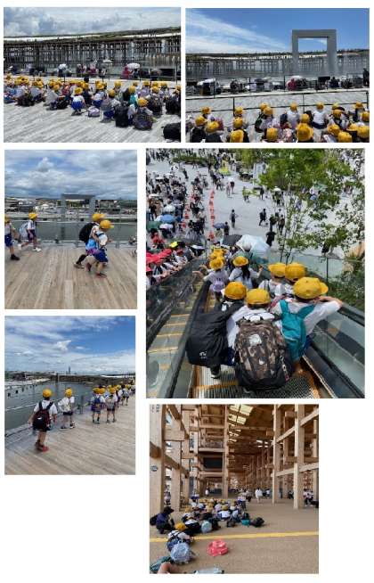 2年生が校外学習「大阪・関西万博」へ行ってきました。昨日からの雨が心配されましたが、天気もよくなり、出発することができました。通所なら森ノ宮の待機所で数十分待つのですが、地面が乾いていないこともあり、森ノ宮駅の中で待つことができました。お弁当を食べたり、ウォータープラザを見学したりしました。大屋根リングにも行って、上から万博の様子を見ることもできました。