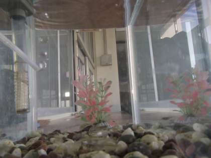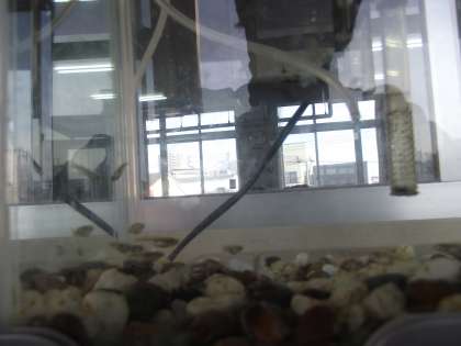 今日は、水槽の左下の方にメダカさんたち集まって、あんまり動こうとはしはりませんでした。
