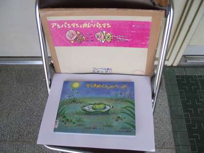 放送室前に、紙芝居や絵本がパイプいす上に置かれていました。誰か何かするのかな?