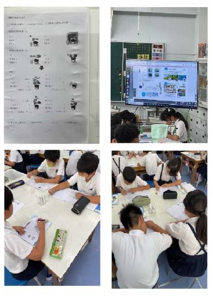 5年生の授業で「植物の発芽と成長」の授業でした。理科担当の教員が作成した自作プリントを児童が解いていきました。観察や実験したことを思い出したり、班のメンバーと相談したりしながら取り組んでいました。