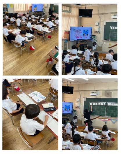 今日は、絵を見て問題をつくる学習でした。まず与えられた式から問題文を各々が考えていきました。次からは、絵に描かれている動物や子どもの数を使って問題文を作っていきました。