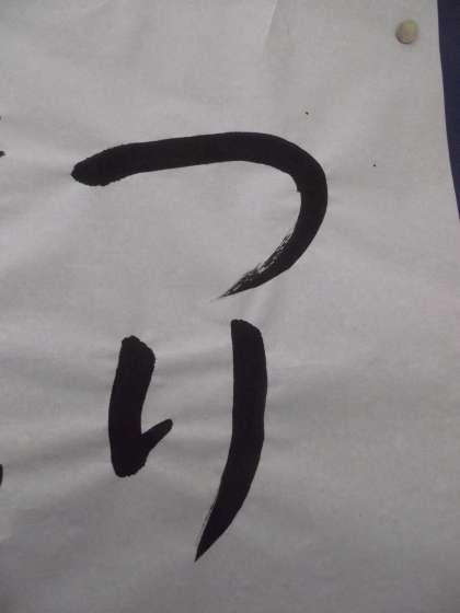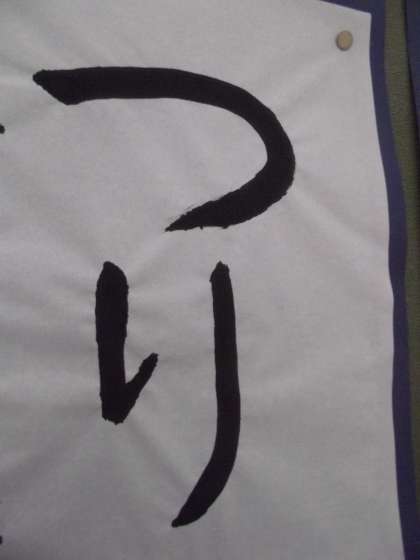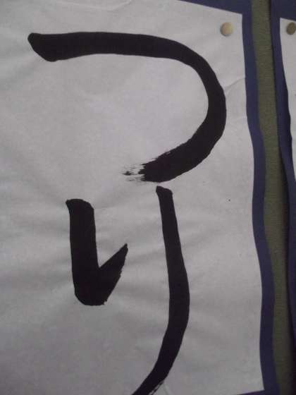 4号階段踊り場に「つり」の毛筆習字が、壁面の半分側に掲示されました。