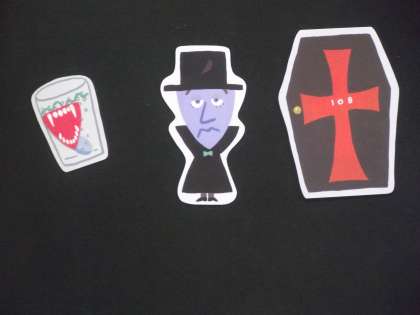 パネルシアター「お化けマンション」を語り部の「OBAちゃん」が、ドラキュラやバケ猫やネズミ王や骸骨さんを紹介してくれながら、ワクワクするお話をしてくださいました。