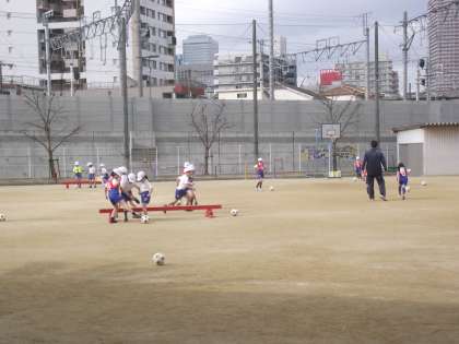 今日は、小さいお友だちが「平均台」を使ってボールを蹴る練習を慕いました。