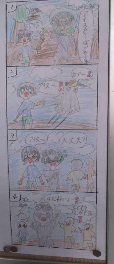 新聞掲示委員会が募集した「4コマ漫画」の入賞作品等が、職員室」前に掲示されました。小学校にお越しの際は、ぜひご覧ください。