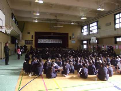 在校生が、6年生のお兄さんお姉さんにありがとうを言いました。