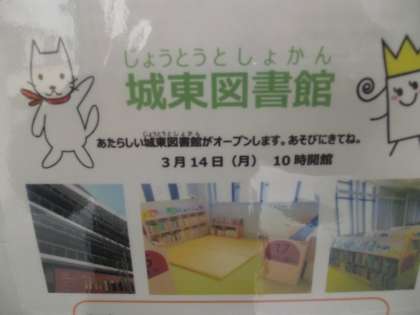 いよいよ3月14日(月)10時に、新しい「城東図書館」がオープンします。