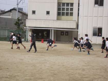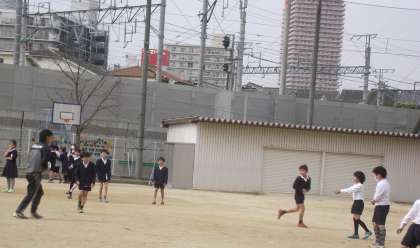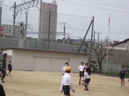 バレーボールが高く上がって、どこかに行ってしまいます。