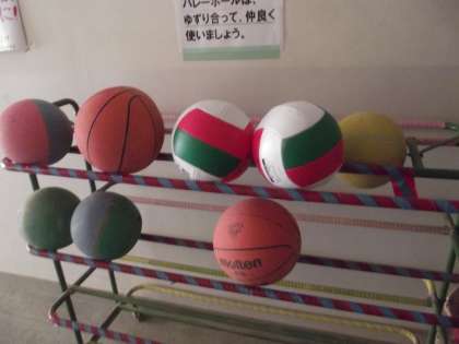 ボール置き場に、バレーボールが登場しました。