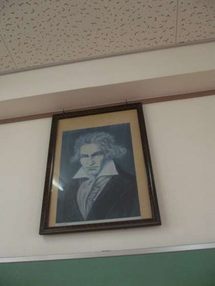 蒲生幼稚園の皆さんが、小学校の見学に来られました。第2多目的室(元音楽室)に案内すると、昔の音楽家の絵に驚いていたようです。