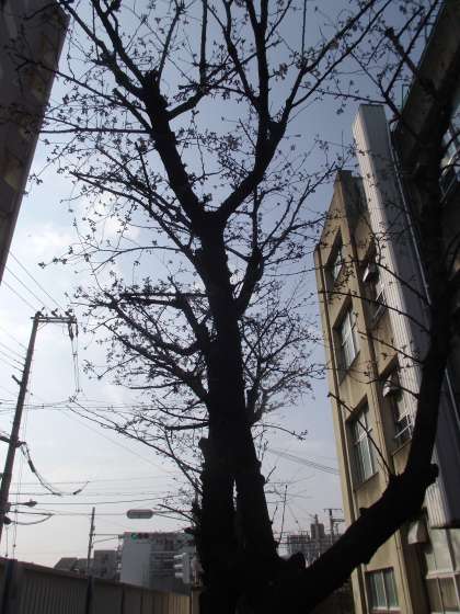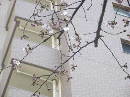 正門の並びの「桜」は、だいぶ開花してきました。去年もたしか入学式前に見ごろは過ぎたような…。