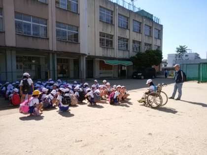 3・4年生が遠足で久宝寺緑地へ出発しました。