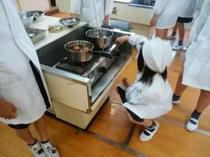 献立はゆで卵と青菜のゆでものです。コンロの火をつけるだけでも大騒ぎでした。