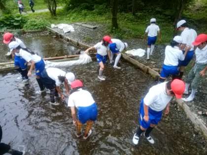13:00魚つかみが始まりました。