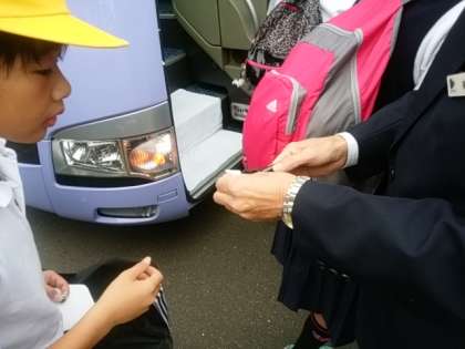 閉舎式を済ませ9時出発です。バスに乗る前に記念入場券を改札してもらいました。