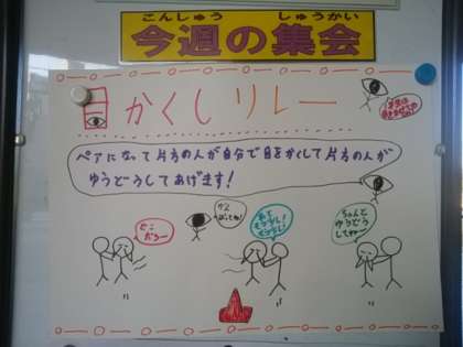今週の児童集会は目隠しリレーです。