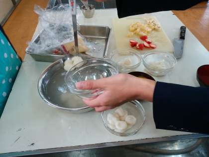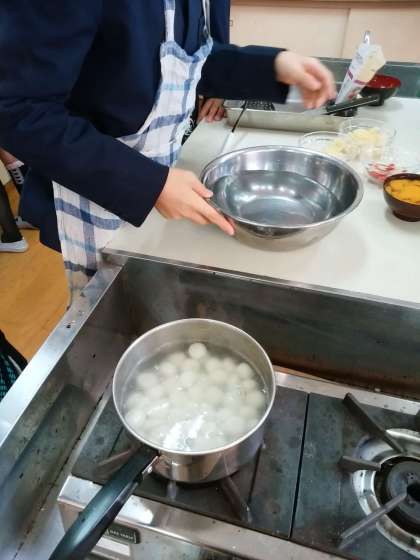6年生が家庭科の時間に白玉作りをしました。美味しいそうでした。