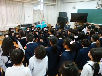 16日木曜日、蒲生幼稚園年長組と本校1年生との交流会がありました。