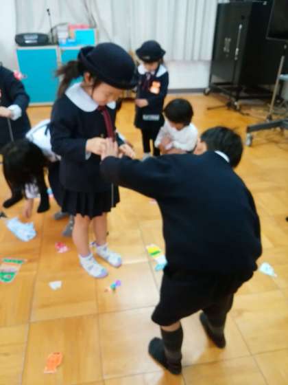 2つのグループに分かれて魚釣りゲームを楽しみました。