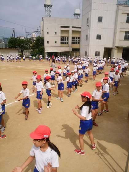 1時間目は運動会の全体練習です。聖賢音頭の練習、応援団の練習をしました。