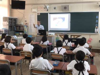 正しい鉛筆の持ち方を校長先生に教えてもらいました。今後、全学年に授業をしてまわるそうです。