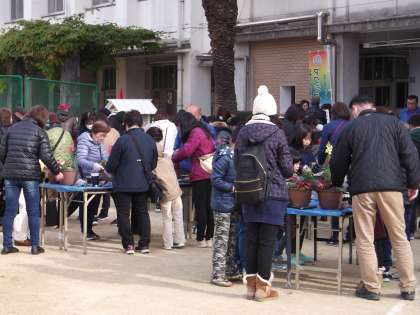 本日は、聖賢地区アクションプラン「寄せ植え講習会」です。本校校庭に、保護者や児童、地域の方々が80名ほど参加しています。