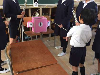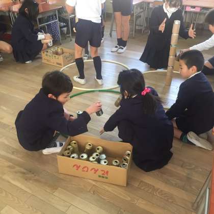 今日は児童会主催のウィンターフェスティバルの日です。各教室で趣向を凝らしたゲームが行われました。