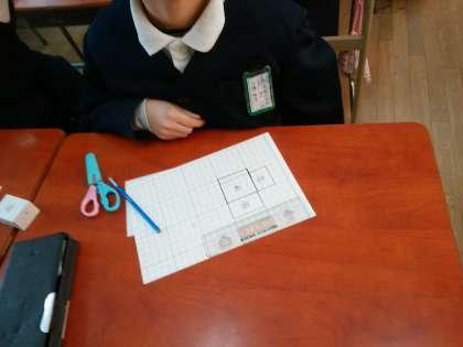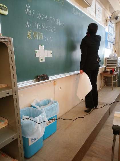 本日3時間目、4年1組で算数の授業公開がありました。学習内容は直方体の展開図の書き方です。