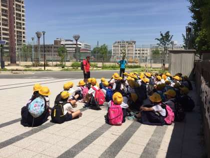 3年生が校区探検に出かけました。城東商店街や蒲生グランドを歩きました。勉強で歩くと普段とはちょっと違った景色に見えます。