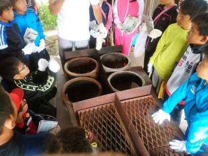 11時45分 野外炊飯で火の起こし方を教えてもらっています。