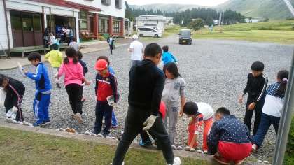 11時50分 突如、雨が降ってきました。干していた上靴を片付けています