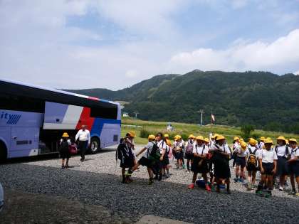 12時20分 迎えのバスが到着しました。いよいよ閉舎式です。