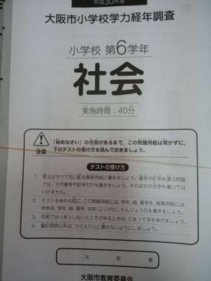 昨日から大阪市学力経年調査を実施しています。今日は国語と社会科と児童質問紙です。3年生以上の教室はどこもとても静かです。