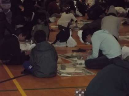 本日、1月20日(日)は、聖賢地区アクションプラン【陶芸に挑戦】です。120名を越える地域の方々が、聖賢小学校講堂に集まりました。講師先生には、「陶工房」NACHIから来ていただきました。みなさん、できあがりを思い浮かべながら作っていました。
